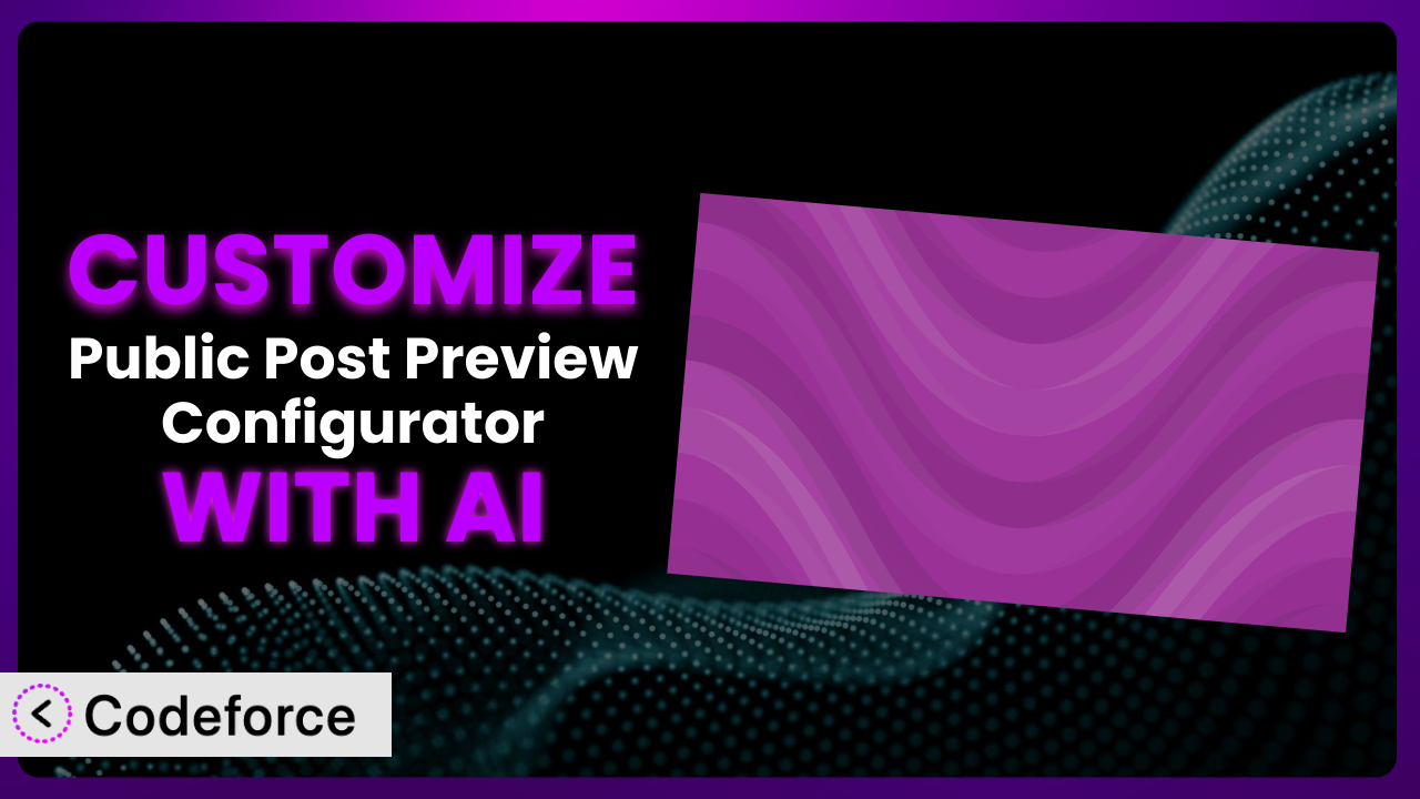 Ever wished you could tweak that WordPress plugin just a little bit more? Maybe add a feature that perfectly fits your workflow, or connect it to another service you love? It’s a common desire! This article dives deep into customizing Public Post Preview Configurator, showing you how to bend it to your will, all with a little help from AI. We’ll explore practical scenarios, customization strategies, and how tools like Codeforce can make the whole process surprisingly easy. Forget struggling with complex code – let’s unlock the true potential of this plugin!